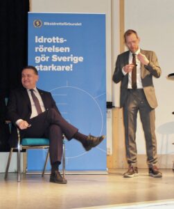 Vad vill då Regeringen med sin idrottspolitik? Forssmed pekade särskilt på tre områden. En satsning på barn och ungdomsidrott där 100 miljoner extra avsätts till idrott i utsatta områden. 25 miljoner går till en satsning på idrott för äldre, och till sist planeras en satsning på ett fritidskort för barn och unga i åldrarna från åk 2 till 9. Utformningen/tillämpningen av fritidskortet ska utredas under 2023. Där har 50 mkr avsatts, sedan ska man vara redo att fördela 800 miljoner 2024.